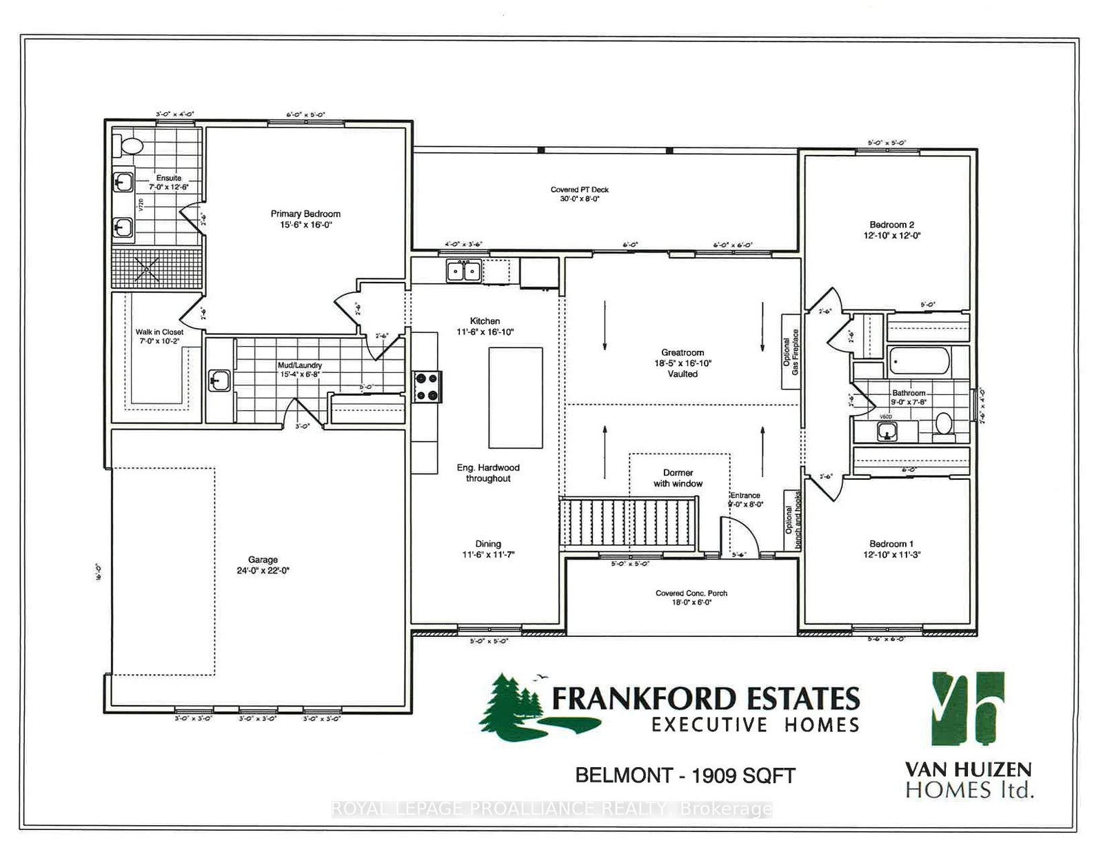 The Belmont is your answer for modern rural living. But consider this your place holder, because in Frankford Estates, all home plans can be customized to your heart's desire. Other lot options and custom designs can be provided upon request. This exclusive estate subdivision features fully custom homes on large country lots by Van Huizen Homes. All the features you want in your family home, along with the outdoor space you crave. Frankford is known for its friendly, laid back vibe. Surround yourself in the scenery and enjoy the convenience of small town life, with easy access to larger towns in the Bay of Quinte region. 16 lots range in size from 1.9 acres to 4.7 acres. Rest easy knowing that you're dealing with a reputable local builder for whom top quality finishes come standard. Expect 9 foot ceilings, high end windows, quartz countertops, and luxury flooring choices. The builder's Tarion warranty provides another layer of assurance. And while you'll certainly enjoy country living in Frankford Estates, you'll also enjoy natural gas service and the connectivity of Bell FIBE.